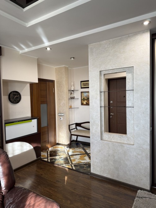 В квартире сделан был ремонт по дизайнерскому проекту. Грамотно использован каждый метр. Сделаны шумо и тепло изоляции. Застеклены две большие лоджии с шикарным видом.