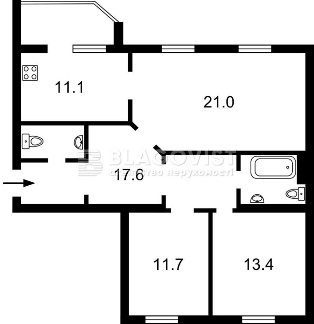 • Трикімнатна