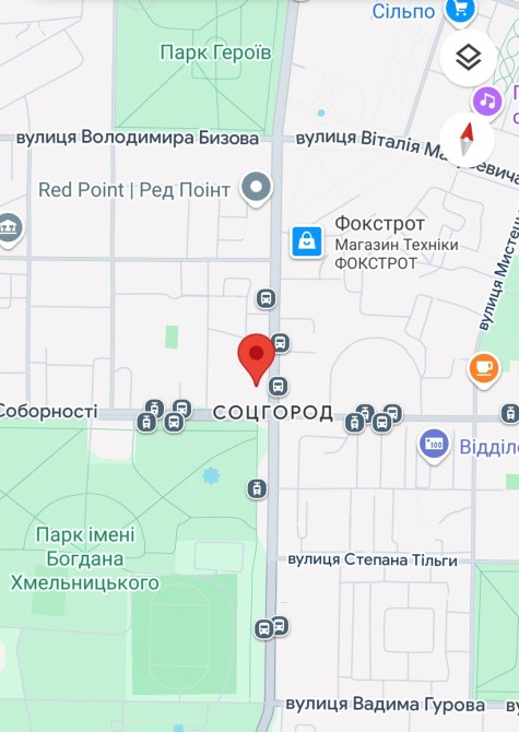 Квартира знаходиться за адресою пр-т Металургів 9, поряд є вся необхідна інфраструктура, через дорогу швидкісний трамвай, маршрутки та тролейбуси у всі напрямки. Поряд знаходяться 2 парка, Богдана Хмельницького та парк Героїв.