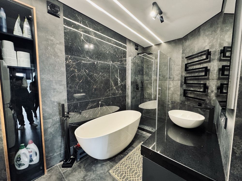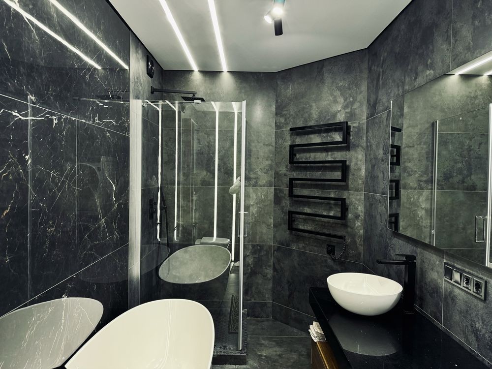 • сумісний санвузол із душовою кабіною та кам’яною ванною;
