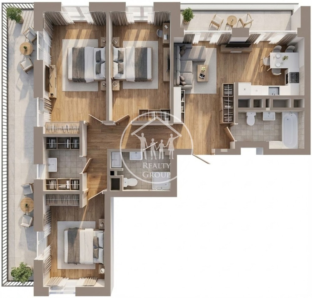 - Власна зона відпочинку: Дві тераси! Величезна кутова тераса (17 м²) для барбекю чи лаунж-зони та менша (5,5 м²) для ранкової кави.