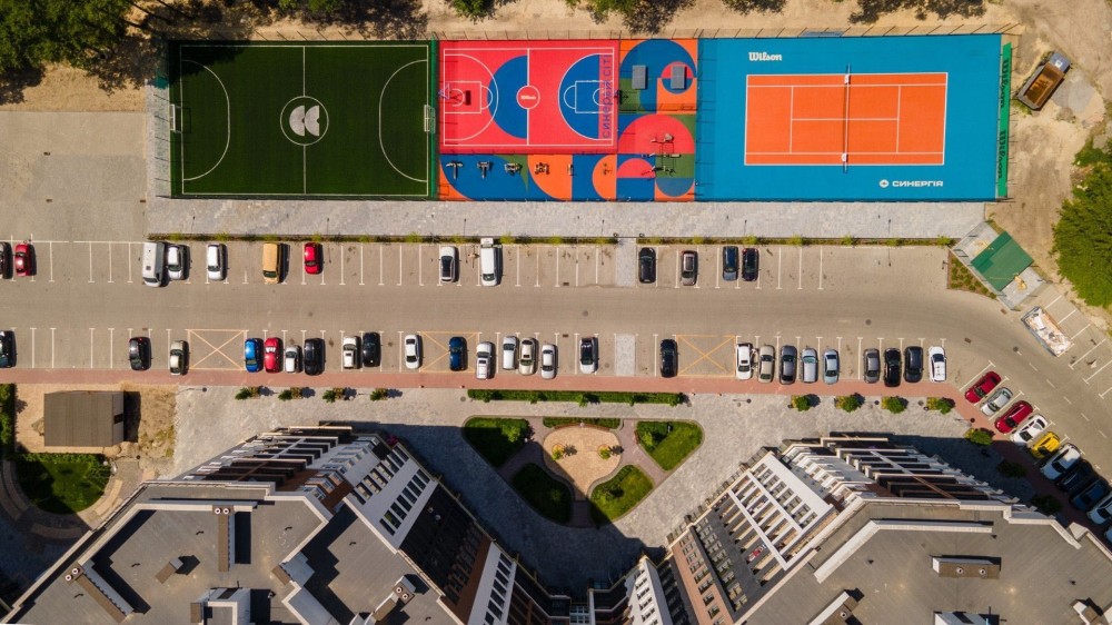 • Інфраструктура: магазини, кафе, паркінг, дитячі зони