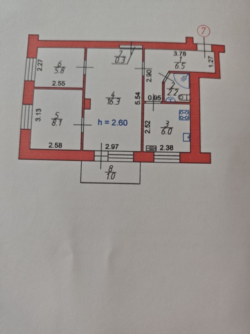 Кімнати: 16.3 , 8.1, 5.8 м2.