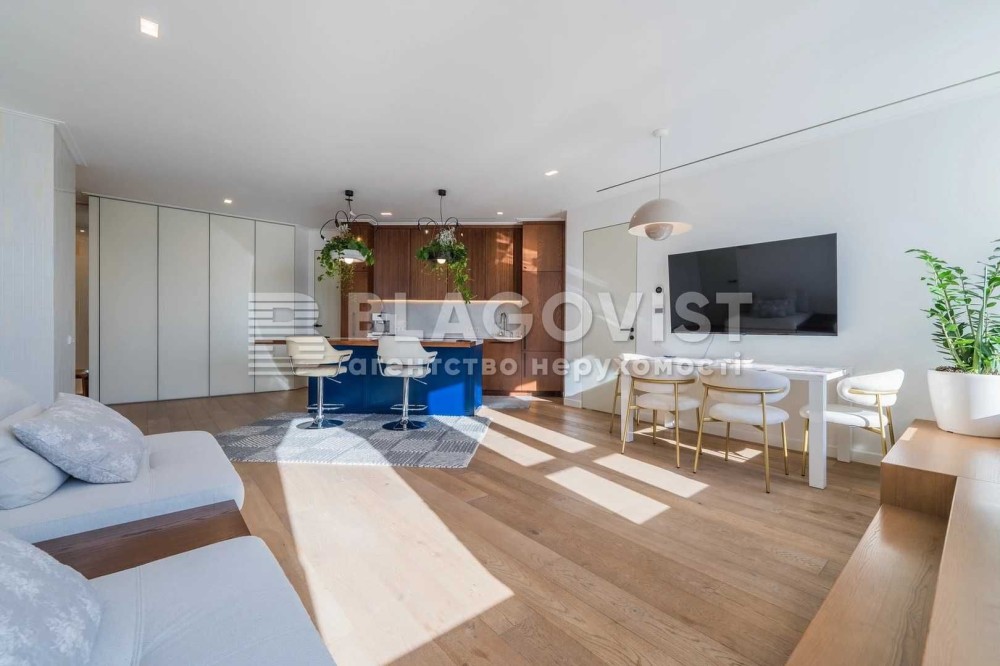 Ексклюзивна квартира з власною терасою та неперевершеною панорамою на центр Києва. Новий дизайнерський ремонт. Планування: кухня-вітальня з виходом на велику терасу, головна спальна кімната з великим санвузлом, дитяча кімната з санвузлом, технічна кімната, гостьовий санвузол. Встановлена система кондиціанування та вентиляції Daikin, система отчистки води, бельгійські алюміневі вікна Reynaers.