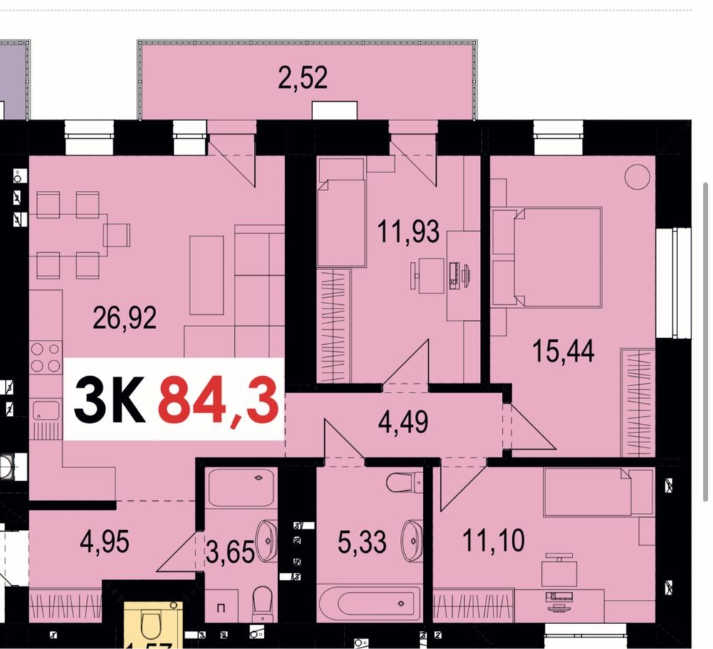 • Трикімнатна
