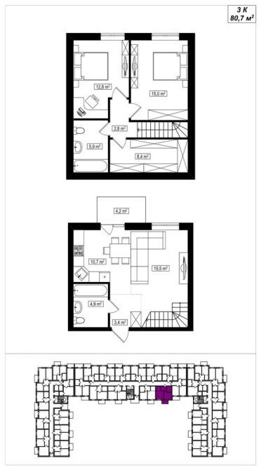 • Загальна площа 80.7 м2