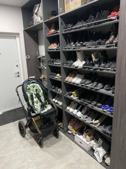 Лоджія облаштована під зону відпочинку. Є багато вбудованих шаф, а також окрема гардеробна кімната.