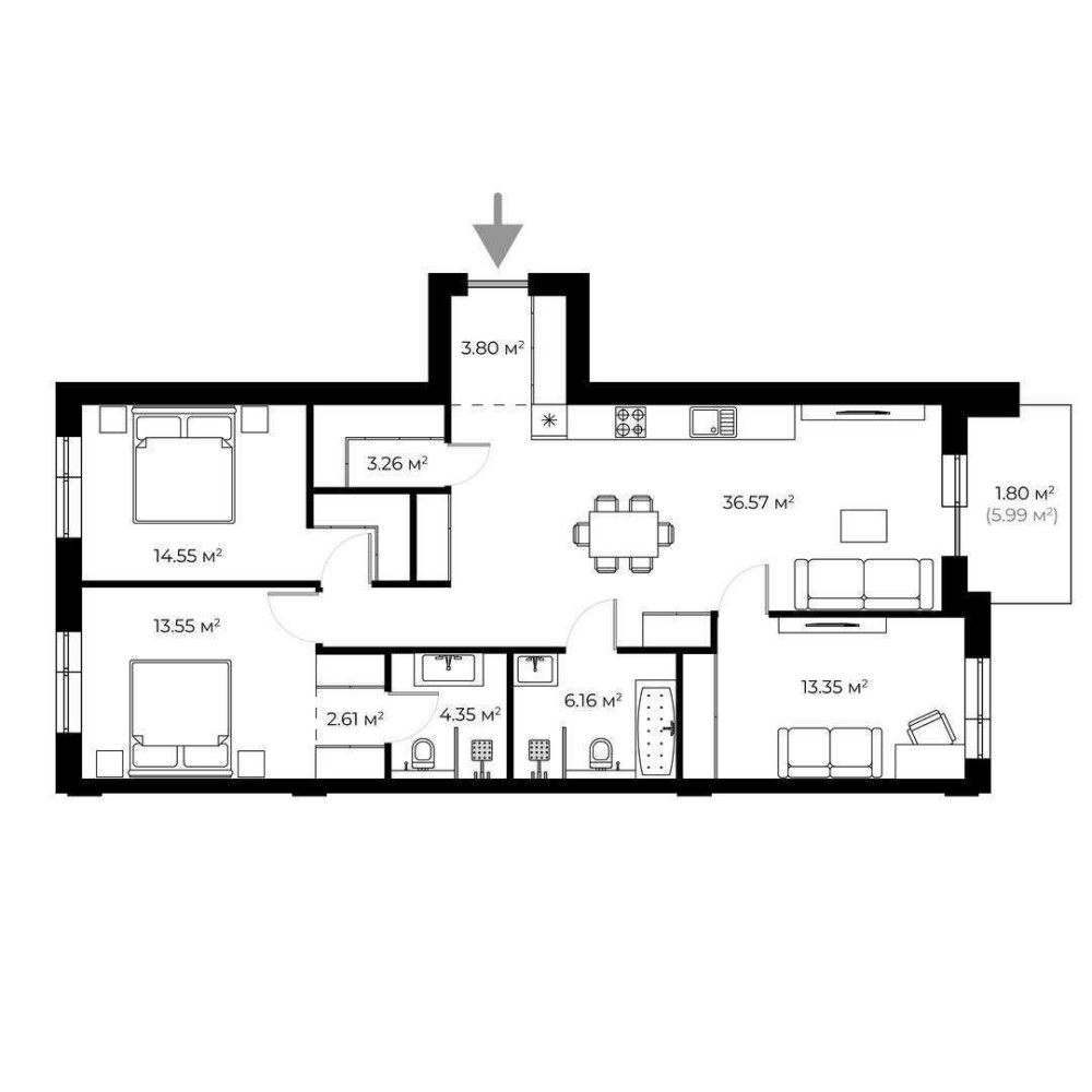 • Площа кухні 36.57 м2