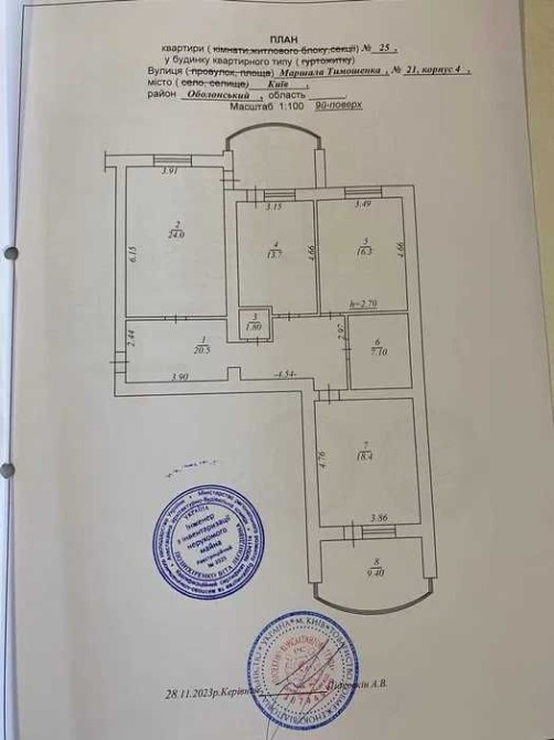 Загальна площа квартири 116 кв. м, кухня 14,3 кв. м, висота стель 3 метри.