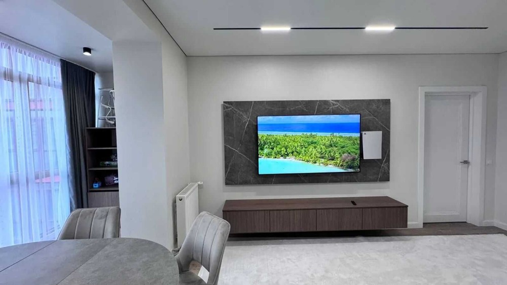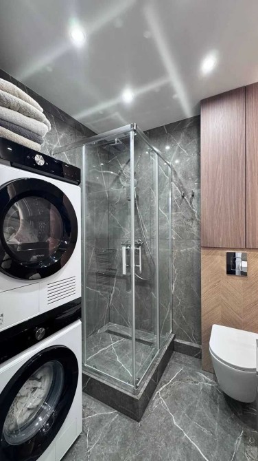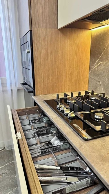 Квартира максимально укомплектована всією необхідною технікою від виробників Samsung та Bocsh: вбудовані холодильник, духова шафа, мікрохвильова, газова варильна поверхня, три елевізори один на 65 дюймів MINI Led, пралка та сушка нова серія Samsung , система осмосу та подрібгювач.