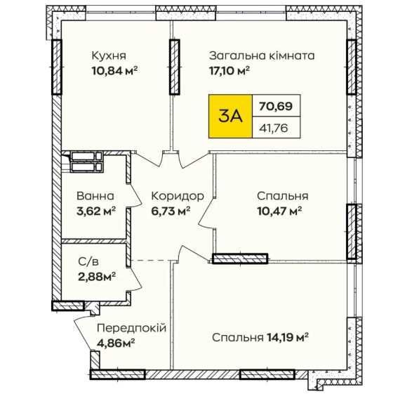 • Загальна площа 70.7 м2