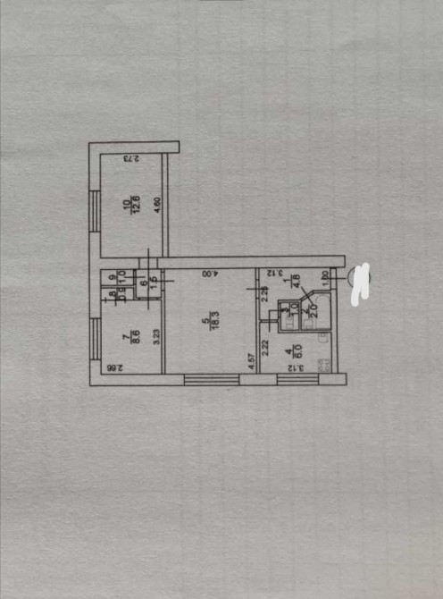 Общая площадь квартиры 56,7м.кв., жилая площадь 39,5м.кв. высота потолков 2,5м. Планировка смежно-раздельная, состоит из трех комнат: 18,3м.кв, 12,6м.кв., 8,6м.кв., кухня 6м.кв.