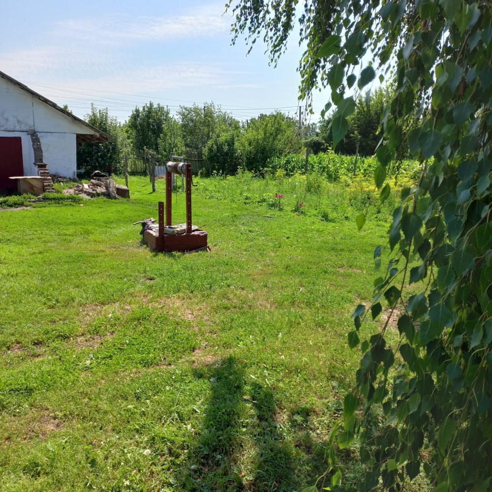 Частично остается мебель. Большой участок( на нем залит фундамент под постройку дома) рядом садик, школа, аптека, банкомат, сельский совет, детская площадка, церковь. Остановка маршрутки на город через дорогу.