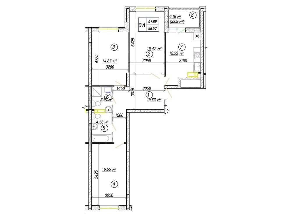 • Загальна площа 86.57 м2