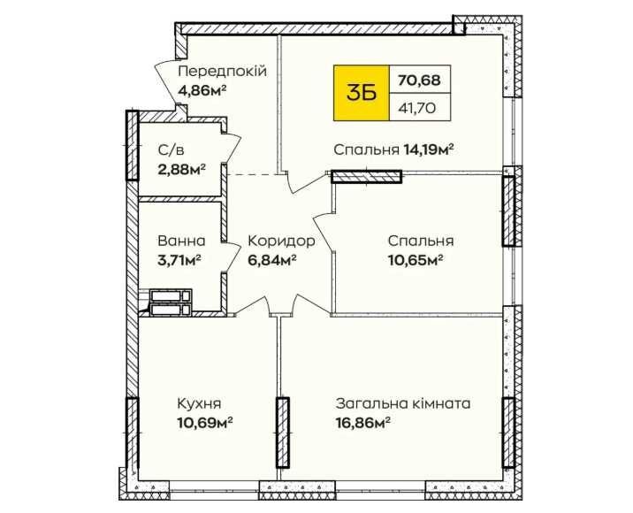 • Загальна площа 70.68 м2