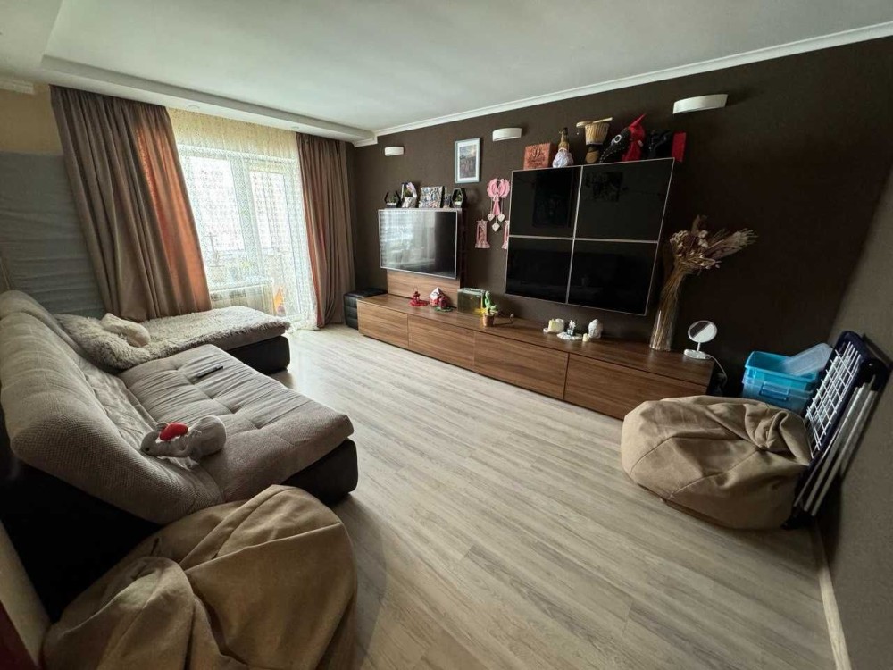 Квартира в дуже гарному житловому стані, має 3 окремі кімнати, дві лоджіі, одна з яких з'єднана зі спальнею і облаштована під робочий простір, суміжний санвузол, простору вхідну зону та кухню. Квартира утеплена ззовні, має індивідуальне опалення (двохконтурний газовий котел), каналізація центральна, водопостачання центральне та зі свердловини, є водоочисна станція.