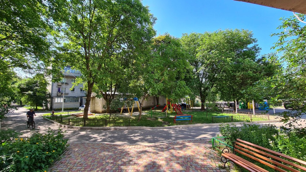 У дворі дитячий майданчик та водозабірна колонка