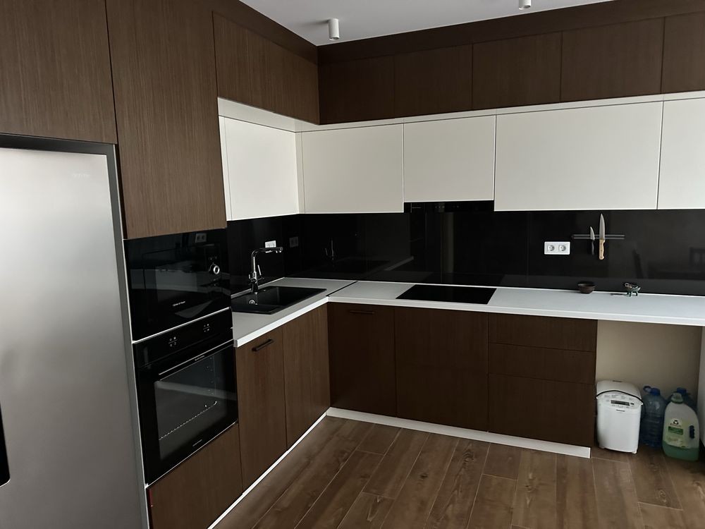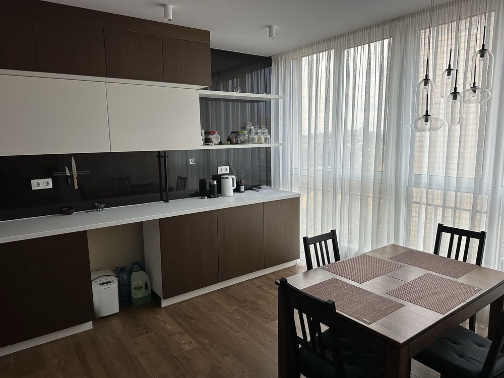 Голосіївський район, Феофанія, ЖК «Кришталеві джерела», вулиця Метрологічна, N 40б, дворівнева квартира, розташована на 8-му та 9-му поверхах, S= 105 м2, на першому рівні розташована кухня студія з вітальною та гостьовий санвузол, другий рівень - дві кімната та два санвузли ( душова кабіна і джакузі ), двустороння, засклений балкон з видом на внутрішню територію жк та ліс Феофанія, якісні ремонт та дорогі меблі, побутова техніка, вбудована кухня, три кондиціонери, все робилося для себе, в квартирі майже ніхто не проживав, 200000 у.о., торг. Ріелтор.