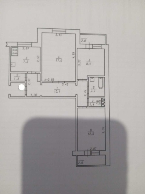 3к,поверх 7/9 , 65м2, . Обжитий капремонт, залишаються вмонтовані меблі.