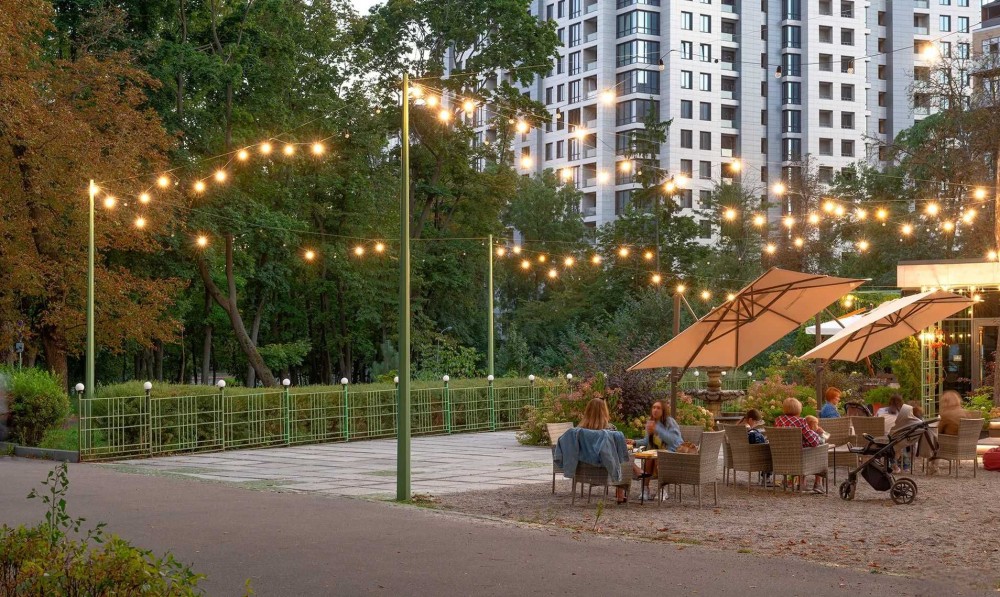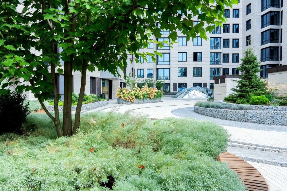 Через дорогу супермаркети «Сільпо», «Мегамаркет» та «Фора». За пару хвилин на авто можна дістатись до торгового центру «Космополіт», де відкриті магазини, кафе, боулінг, каток та дитячі зони.