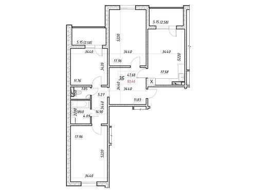 Площа квартири: 93.46/47.68 житлова/17.58 кухня.