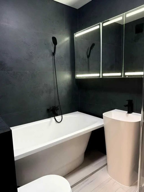 Квартира повністю мебльована і оснащена новою технікою, включаючи холодильник, посудомийну машину, духову шафу, витяжку, варильну поверхню, мікрохвильову піч, пральну машину з сушкою, пилосос, фен, електрочайник, праску, телевізор, швидкісний інтернет, Wi-Fi.