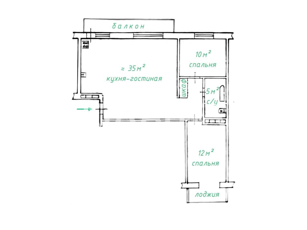 Окна выходят на две стороны; с обеих сторон — зелёная зона.