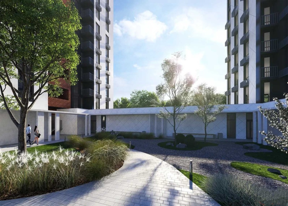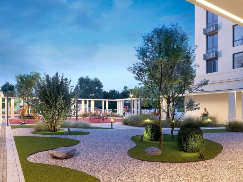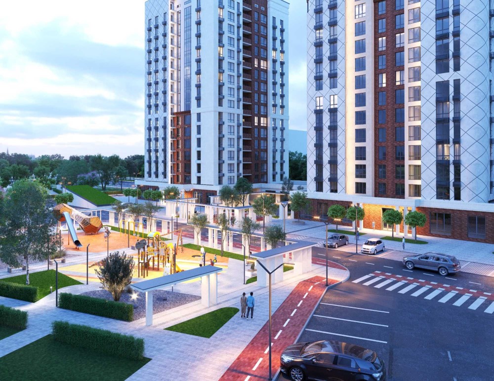 Третина території комплексу відведена під зелені зони та парк.