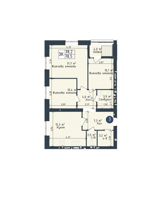 • Загальна площа 78.5 м2