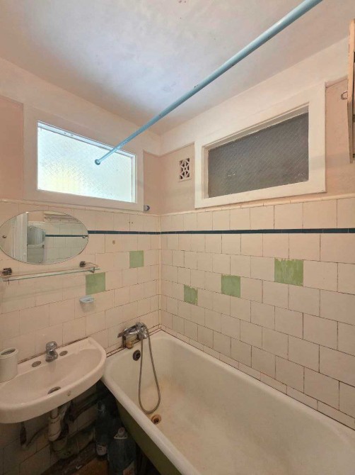 - незаконченный ремонт (частично отштукатурены стены, электропроводка разведена до розеток и выключателей, подача воды и канализация выведены до мест монтажа кухонной мебели и бытовых приборов в ванной, установлены две инсталляции под унитаз, установлена ванна)