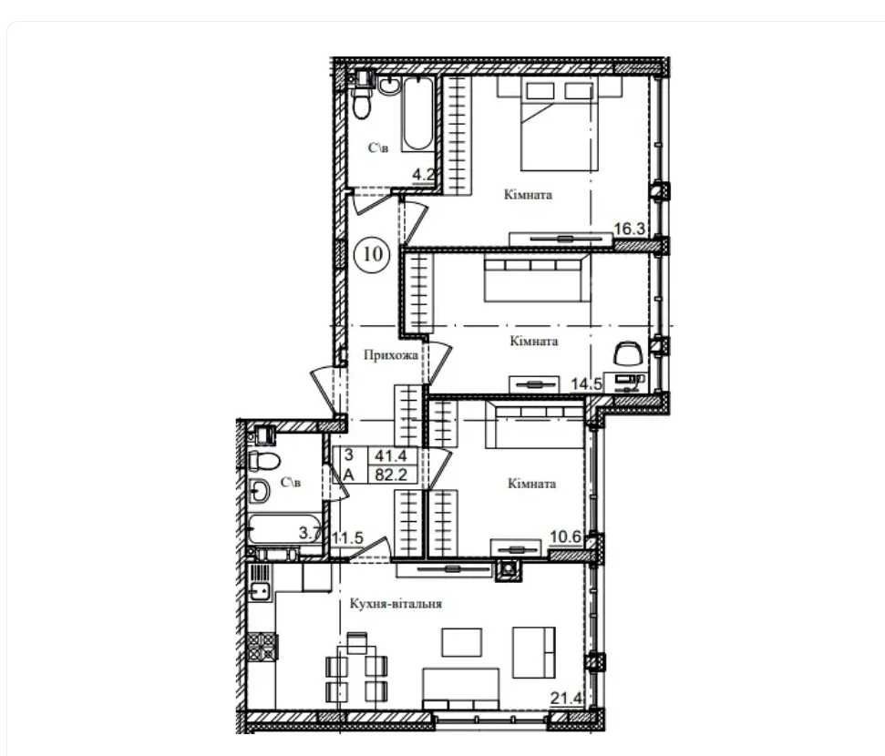 • Загальна площа 83 м2