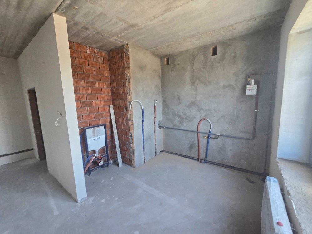 У ванних кімнатах вже встановлені інсталяції та сантехніка. Встановлено котел.