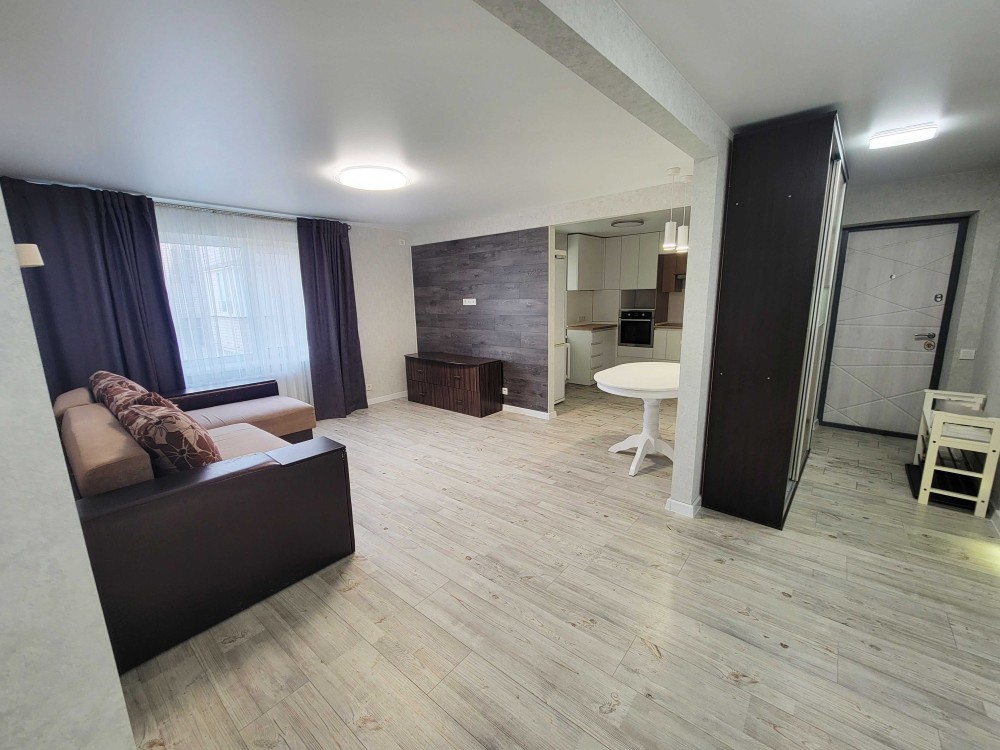 В квартирі замінені всі вікна на пластикові із потрійним склом. Всі стіни та підлога були збиті та замінені (маяк + бетон). Стелі натяжні білого кольору матові із вбудованим освітленням. Підлога в один рівень по всій квартирі, утеплена та заслана ламінатом. В усіх кімнатах додано батареї для кращого опалення приміщень.