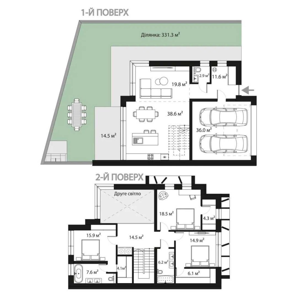 - Площа ділянки: 331 м²