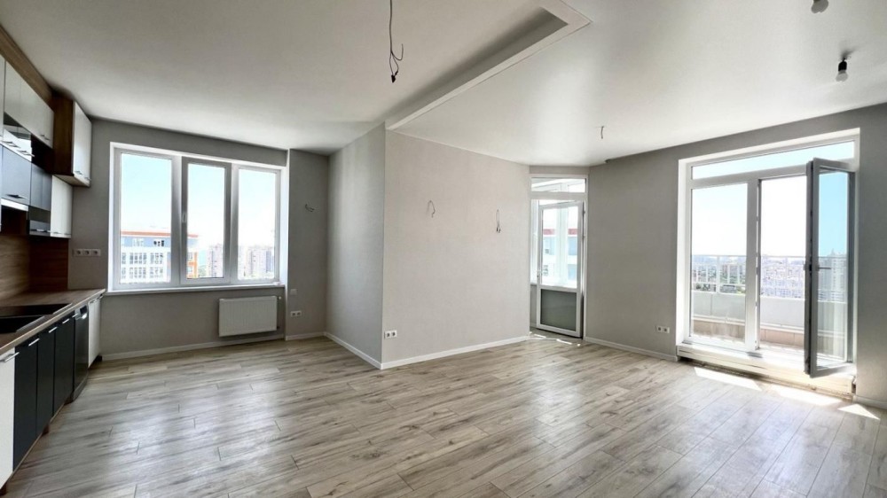 Велика, світла кухня-вітальня, окремий кабінет та дві окремі спальні, є великий балкон з панорамним видом на море