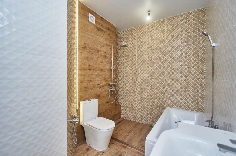 Два санузла, ванна и душ.