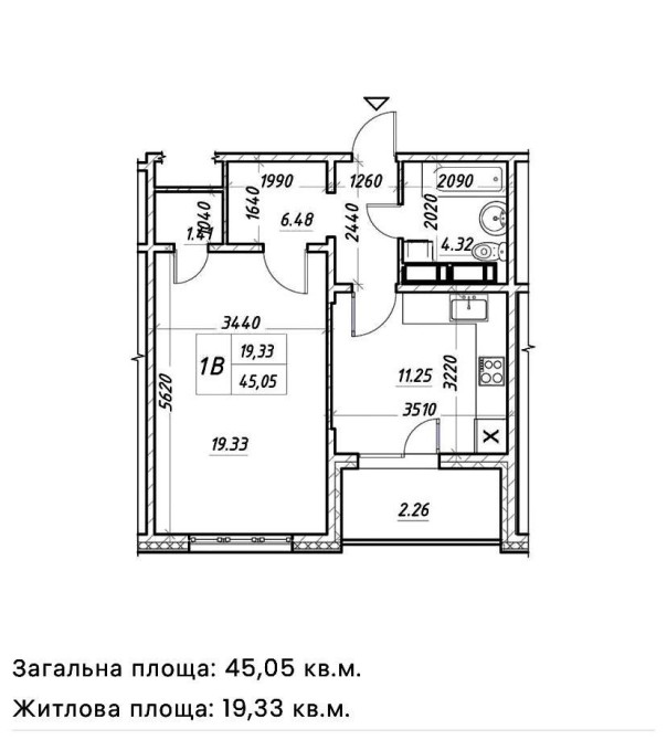 Загальна площа 44 м2