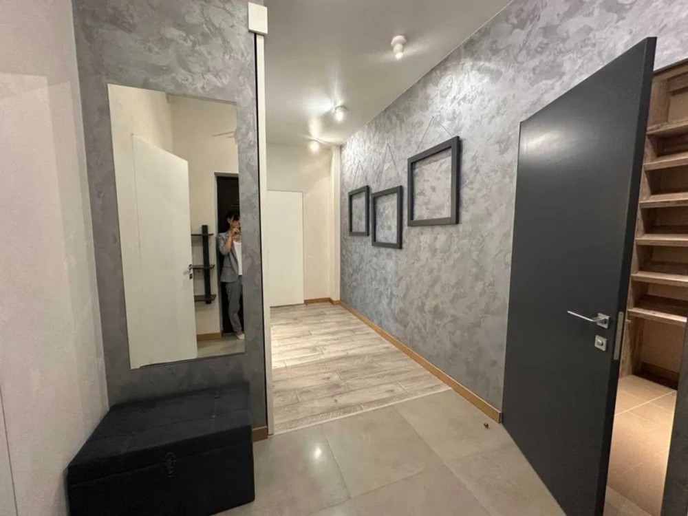 Двухкомнатная квартира площадью 75 м² на 13 из 18 этажей, потолки около 3 м. Планировка с просторной кухней около 20 м², отдельной гостиной и спальней; есть гардеробная ниша и застеклённая лоджия. Выполнен свежий дизайнерский ремонт в светлой современной палитре. Кухня с лаконичным глянцевым гарнитуром, встроенной техникой и подсветкой фартука; столешницы и рабочие зоны выдержаны в едином стиле. Гостиная с медиа-зоной, декоративной кирпичной стеной, нишей под кресельный уголок и кондиционером. Санузел увеличенной площади: отдельно стоящая ванна и душ с прозрачной перегородкой, вместительные системы хранения, ниша с техникой. Полы — керамогранит под дерево; двери и светильники выполнены в единой стилистике. Квартира светлая, тихая, вид на благоустроенный внутренний двор.