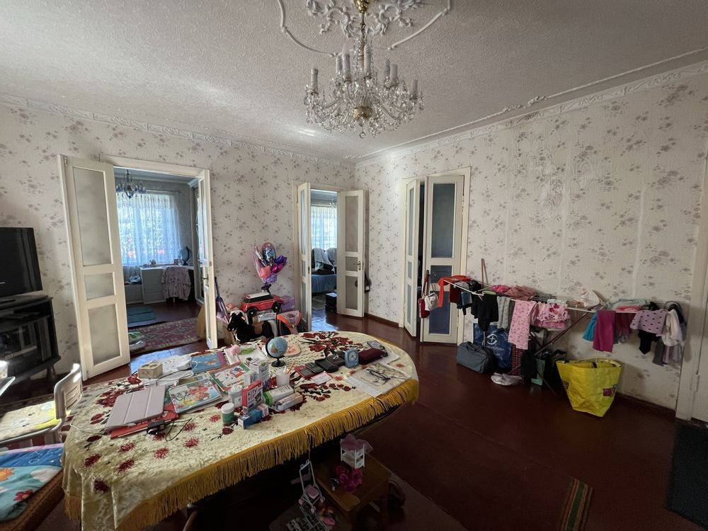 В доме большая гостиная и три просторных изолированных комнаты. Высокие потолки, ровный и крепкий пол.