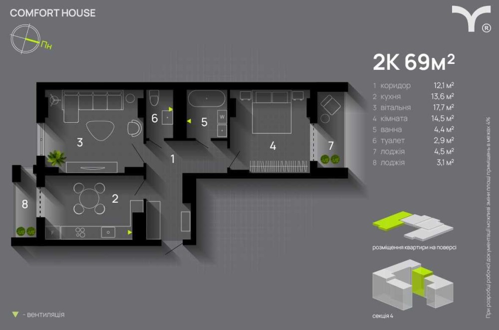 • Загальна площа 66 м2
