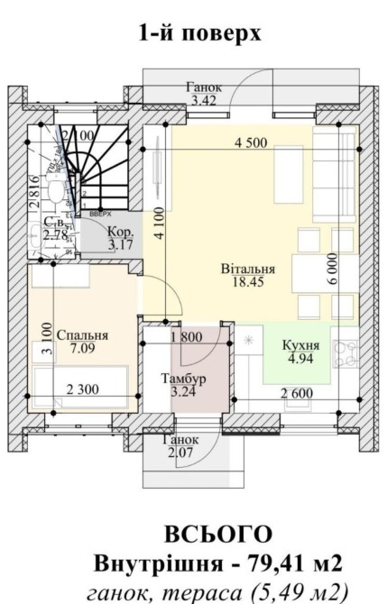 Двоповерховий таунхаус на 79м2