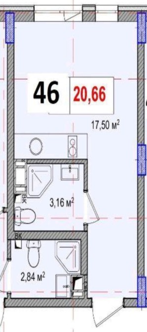 • Загальна площа 20.66 м2