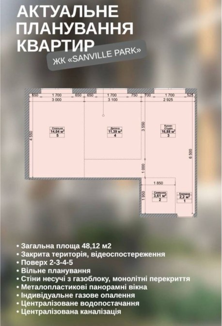 • Загальна площа 48 м2