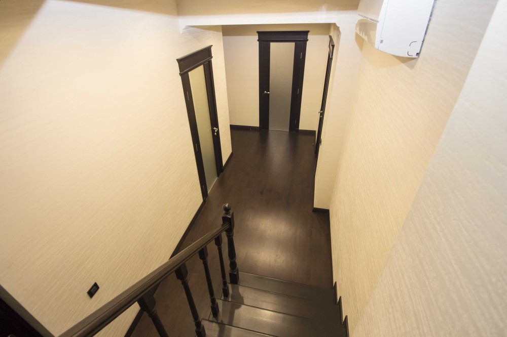 В квартире очень практичная планировка - на первом уроне кухня, гостиная, санузел; на втором - две раздельные спальни, кабинет, гардеробная, санузел. Из кухни выход на террасу, с которой открывается вид на весь город и море. Выполнен дизайнерский ремонт с использованием качественных материалов. Квартира продается с мебелью и техникой.
