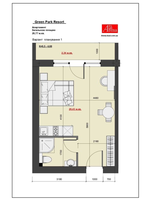 • Загальна площа 29 м2