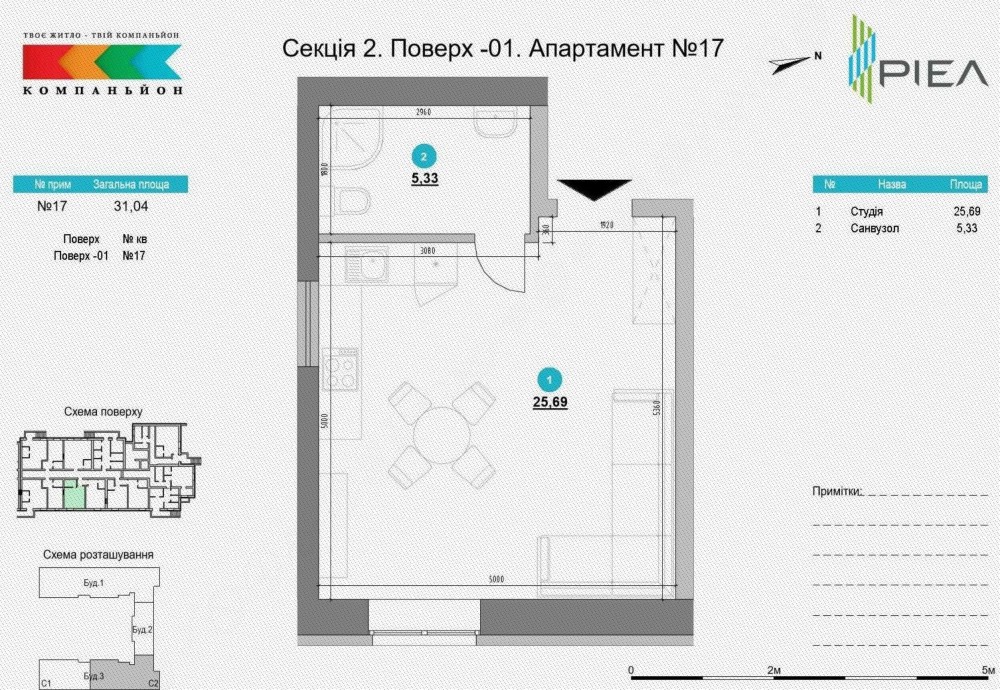 Апартаменти у ЖК «Компаньйон» — студія, розташована в затишній частині міста з хорошим доступом до інфраструктури та природи.