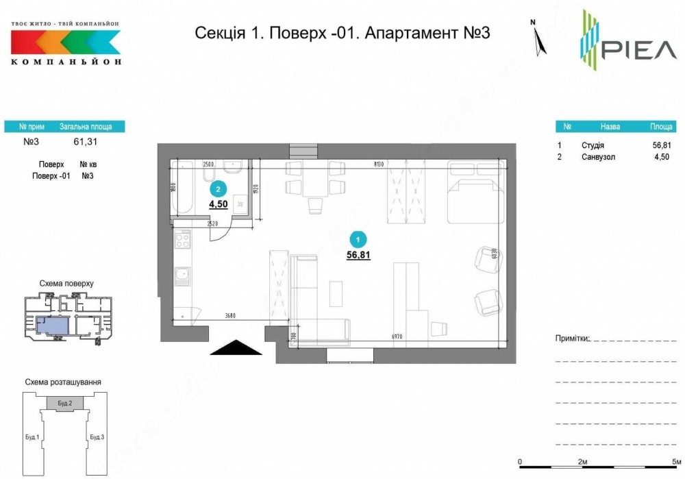 Апартаменти 60.4 м2 в ЖК "Компаньйон" 30% внесок. Акція! - фото 2