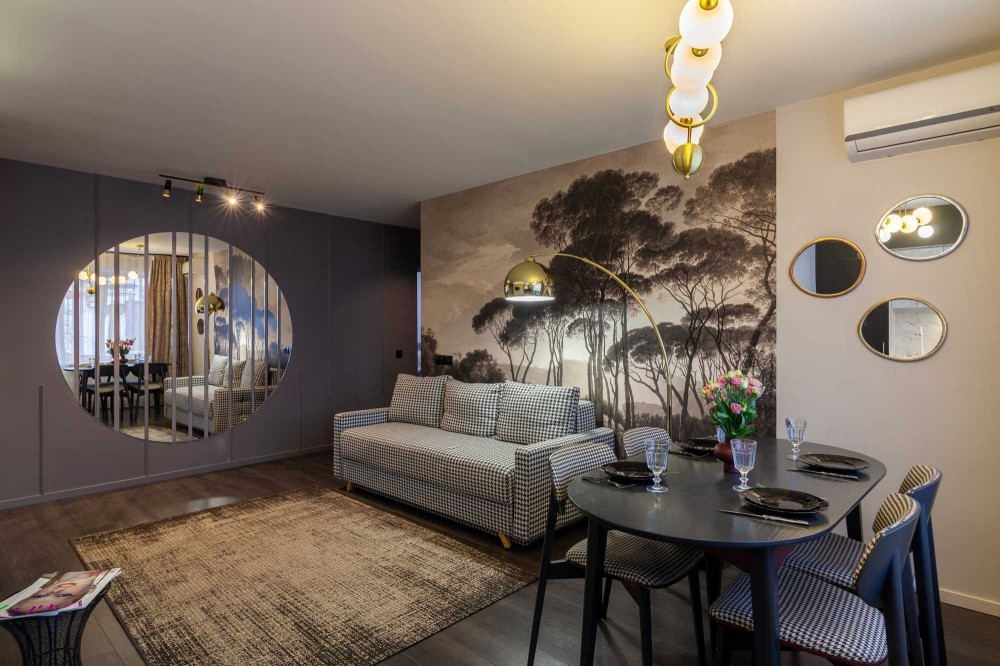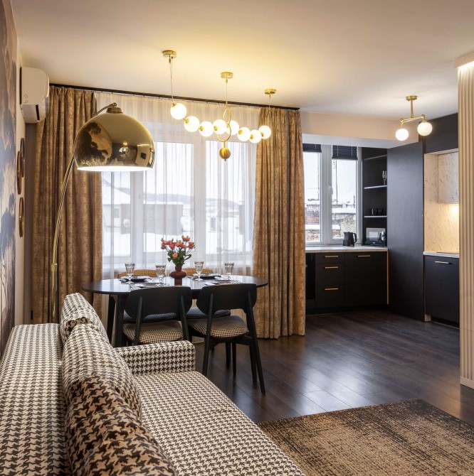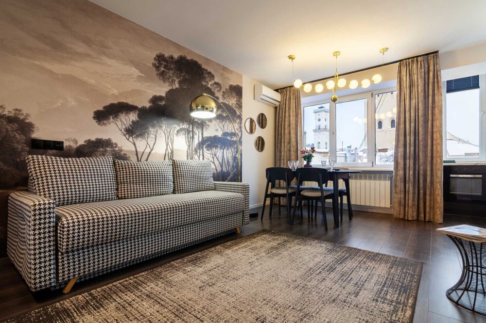 Апартаменти у центрі Львова з авторським ремонтом. Квартира з двома ізольованими спальнями та кухнею-студією із розкладним диваном. Апартаменти можуть розмістити до 6 осіб. Квартира обладнана необхідною побутовою технікою, що забезпечить вам комфортне перебування. Красивий вид з балкону на проспект Свободи передає особливу атмосферу Львова. Історичні пам'ятки Львова знаходяться у пішій доступності від апартаментів. Гарантуємо приємні враження від перебування у наших апартаментах!
