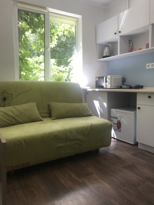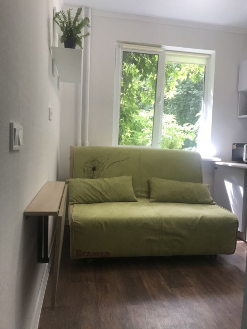 ул. Василенко 4, 1/5 этажного дома, после ремонта, квартира-студия 14 кв.м., с/у совместный, душ, полная комплектация: Диван раскладной, шкаф, стол, стулья, чайник, холодильник, СМА, бойлер, интернет есть, небольшие коммунальные. Тихий двор, к метро "Берестеская" 15 минут, рядом рынки, магазины, аптеки, хорошая транспортная развязка.