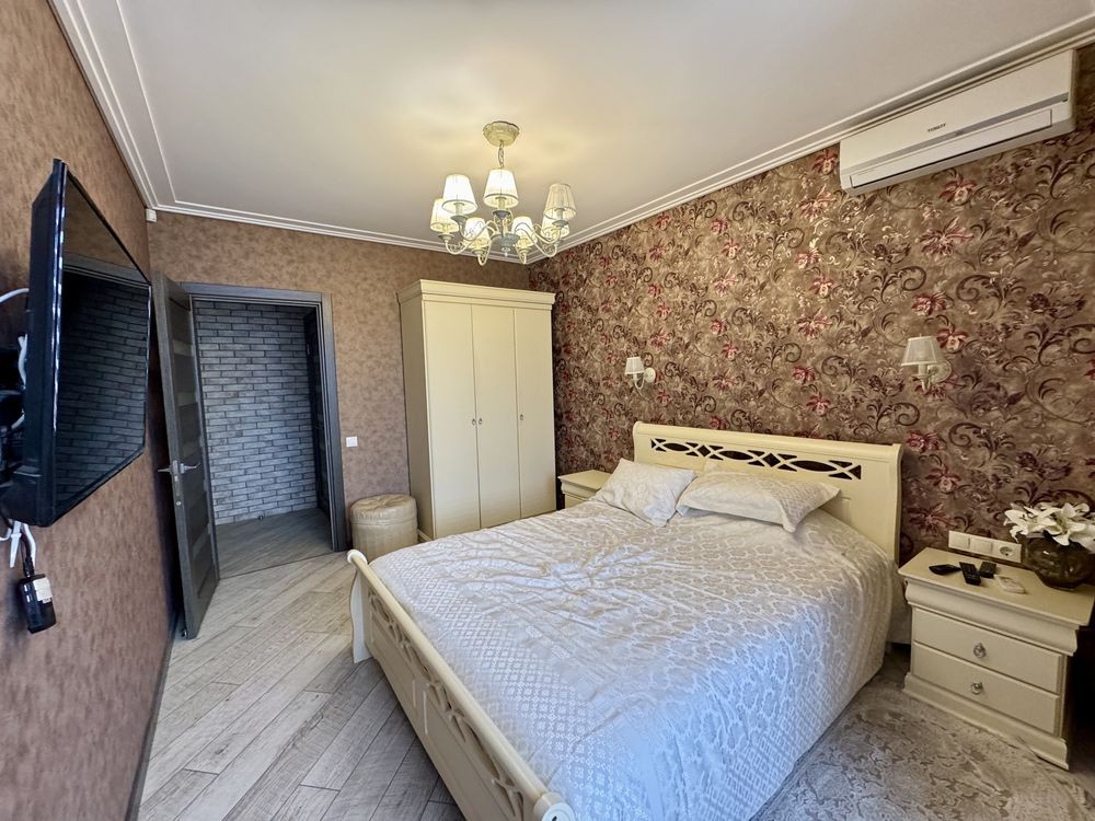 Код: 172. ПОМЕСЯЧНО АРЕНДА АКТУАЛЬНА В ПЕРИОД С 01.09 ДО 30.05 (в летний сезон сдается посуточно от 2-х суток, раннее бронирование от 5-и суток и более). Пятикомнатная квартира в центре Одессы, ул. Дерибасовская/угол Греческой площади, 2/3 - эт. дома - памятника архитектуры, общая площадь 100 кв. м. Авторский ремонт, сочетание классики и современного стиля, качественные материалы, высокие потолки (5 м.), большой зал в двух уровнях с LCD телевизором, четыре спальни с большими двуспальными кроватями, дорогая итальянская мебель, кожаная мягкая мебель, огромная круглая кровать в центре главной спальни, создают атмосферу абсолютного комфорта. Санузел с джакузи на 2 места. Квартира оборудована: 3 кондиционера, плазменный TV + 2 LCD TV в спальнях, WI-FI интернет, большая джакузи, DVD, стиральная машина, CD-магнитола, спутниковое ТВ, микроволновая печь, фен, кофеварка, тостер, телефон. Прекрасный вид из окон на Греческую площадь. Удачное расположение дома, самое сердце Одессы, множество достопримечательностей, потрясающая архитектура, множество кафе и ресторанов под открытым небом. Напротив дома (в самом центре Греческой площади) расположен большой торговый центр «Афина» (с платным подземным паркингом). Вход в дом - железные ворота с домофоном. Допускается проживание с животными. Аренда от 1-го месяца и более. Стоимость может варьироваться в зависимости от срока аренды. Перед просмотром уточните наличие и детали по VIBER, WHATSAPP или TELEGRAM, указав «КОД» из объявления. КОМИССИЯ ЗА УСЛУГИ РИЭЛТОРА - 50% от месячной аренды (разовая оплата при оформлении договора).